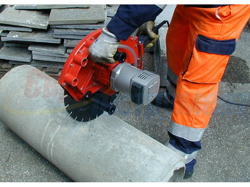 Используемый в устройстве электрический двигатель мощностью 3 кВт обеспечивает эффективную нарезку борозд в кирпиче, бетоне, а также в других строительных пористых и плотных материалах. Поскольку производительность зависит от качества отрезного круга, для получения хороших результатов рекомендуется использовать соответствующие алмазные диски диаметром 400 мм с посадочным отверстием 25,4 мм.