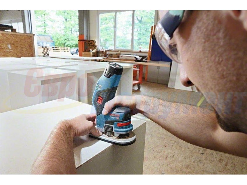 Профессиональный аккумуляторный фрезер Bosch GKF 12V-08 (каркас) используется в строительстве, небольшом мебельном производстве и домашнем ремонте при условиях, где отсутствует стационарное подключение к электросети. Инструмент справится с профильной обработкой твердых и мягких пород древесины, фанерных и МДФ-плит и пластмассовых заготовок (вырезание кромок, выборка четверти и отверстий под фурнитуру, а также выполнение небольших пазов).