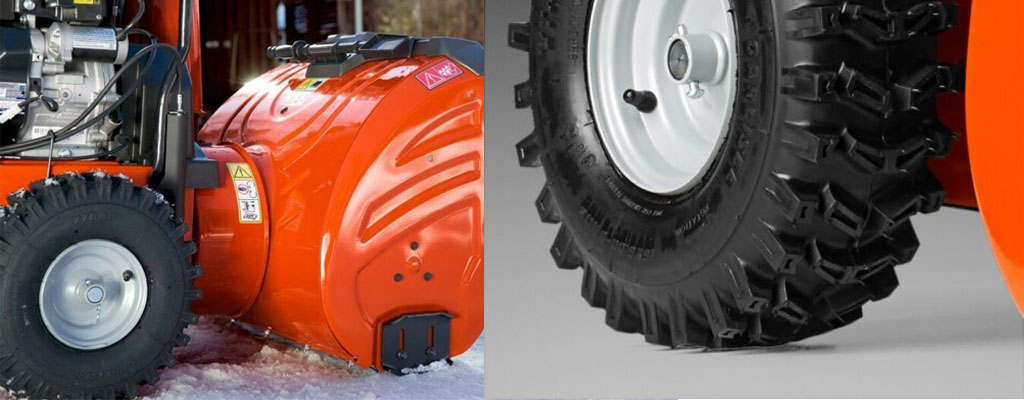 - Диаметр колёс. Чем больше колёса, тем выше проходимость, но одновременно с этим требуется и большая мощность двигателя, а значит растёт и стоимость. По этой причине, если не нужно убирать территории со сложным ландшафтом, то нет необходимости в модели с очень большими колёсами.