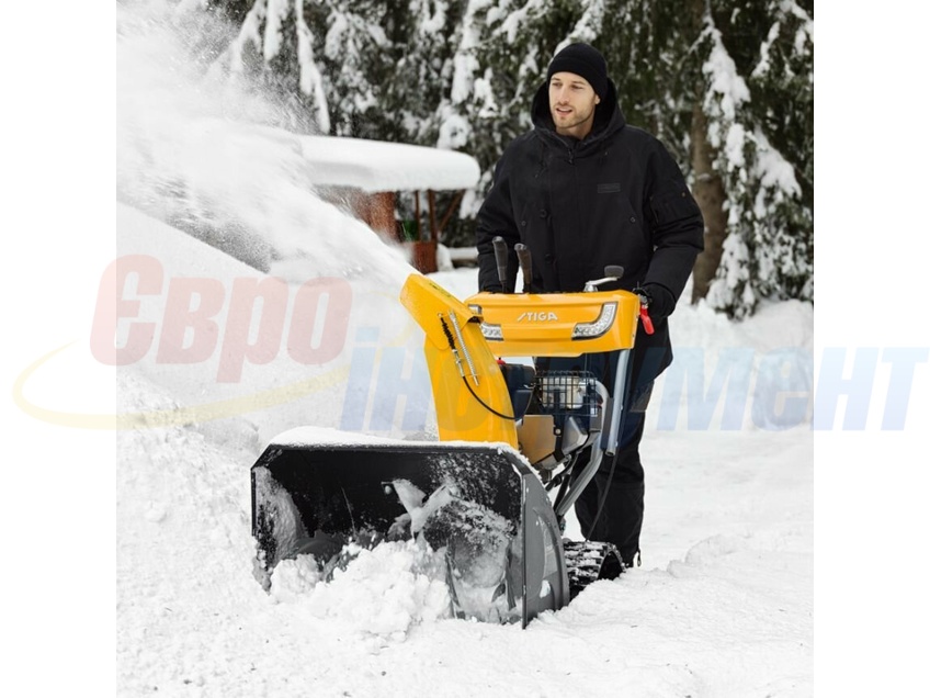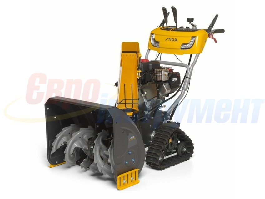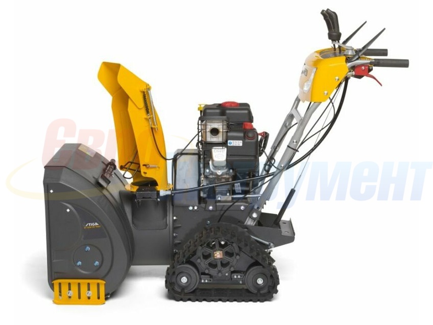 Снегоуборщик бензиновый Stiga ST 5266 PB TRAC - профессиональный аппарат, оснащенный специальными треугольными гусеницами, благодаря которым обеспечивается хорошая тяга даже на склонах. Надежный и эффективный двухступенчатый снегоочиститель с бензиновым двигателем Briggs & Stratton мощностью 5000 Вт и стальным зубчатым шнеком способен обрабатывать практически любой тип снега и отбрасывать его на расстояние до 12 метров. Оснащение опорами идеально адаптировало машину для удаления снега с любых поверхностей: от плиточного или деревянного пола до брусчатки. Stiga ST5266PB_TRAC купить - значит стать владельцем оптимальной снегоуборочной техники для использования на больших территориях. Это устройство подходит для работы в полном комфорте даже в самых сложных условиях благодаря специальным светодиодным фарам, ручкам с подогревом и электрическому стартеру.