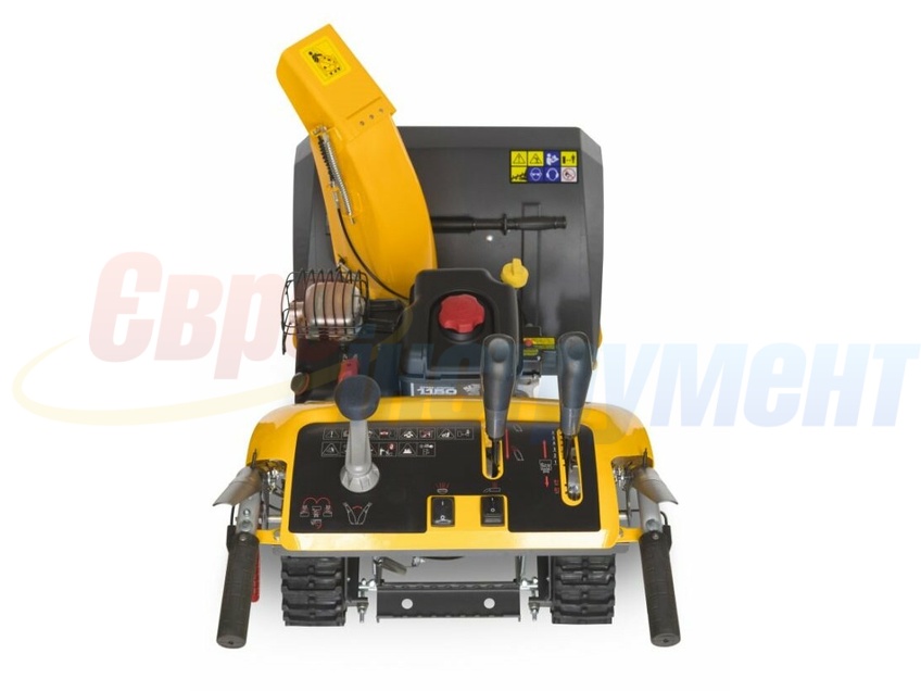 - Все рычаги (для управления желобом, дефлектором и для регулировки скорости) удобно расположены на панели управления