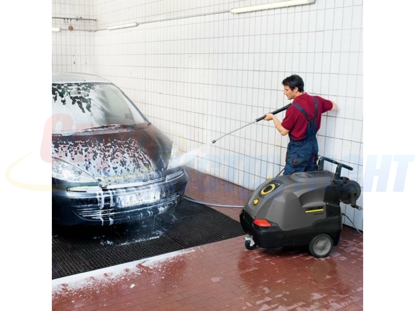 В качестве привода помпы в устройстве оборудован трехфазный двигатель с водяным охлаждением. Встроенная система SDS компенсирует скачки давления, а фильтр надежно защищает насос от повреждений. Для нагрева воды используется дизельное топливо, собственная патентная система Karcher eco!efficiency снижает его потребление и способствует эффективности в работе без использования моющих средств. Также можно отметить эргономичность аппарата и используемых аксессуаров, для их компактного хранения на корпусе мойки есть специальные приспособления.